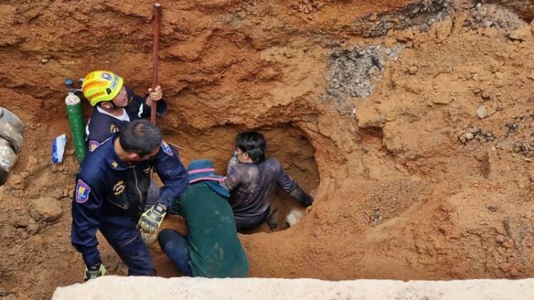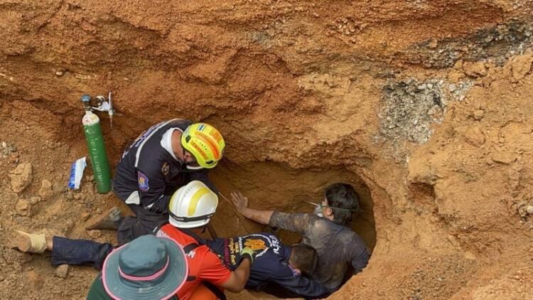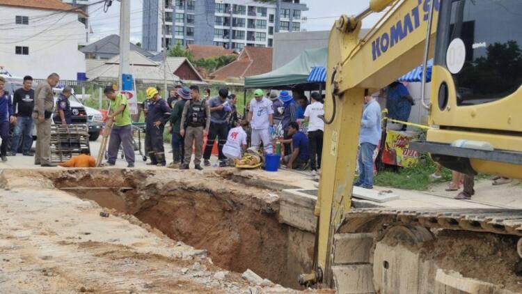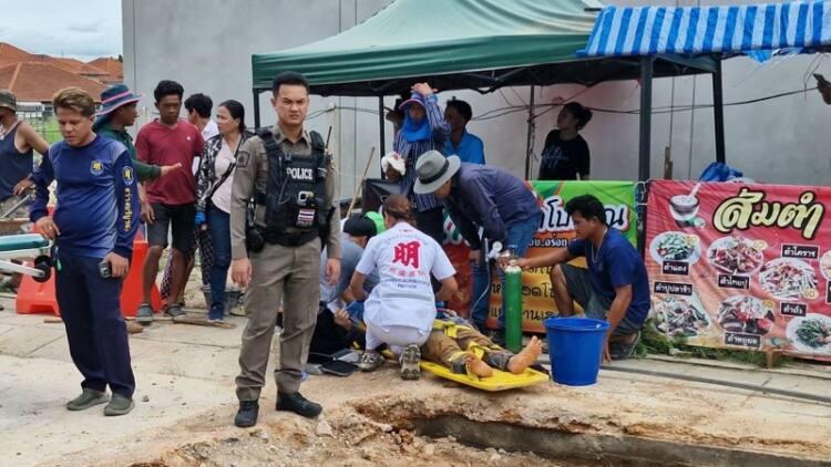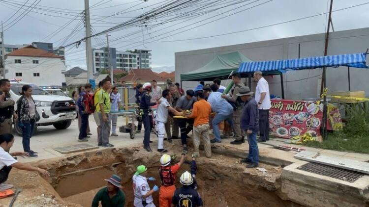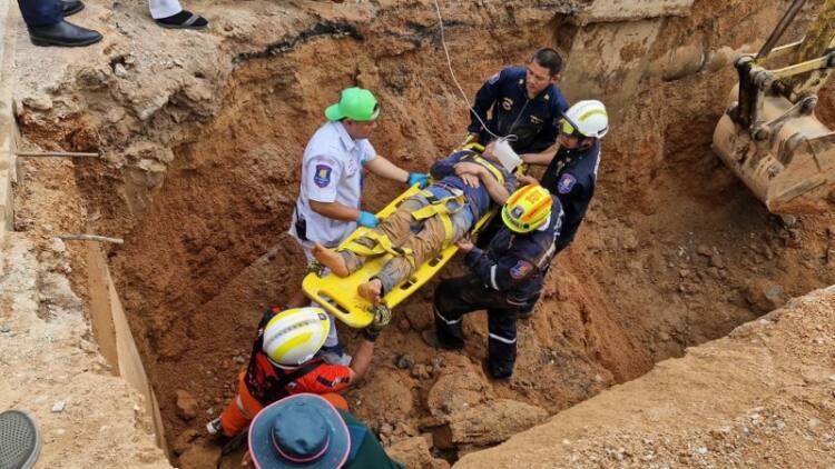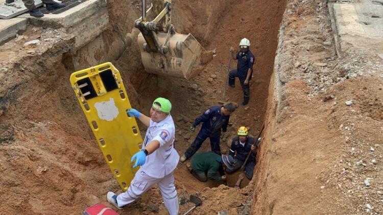 ที่เกิดเหตุขุดเป็นหลุมขนาดใหญ่ ใช้สำหรับ เป็นบ่อพัก วางท่อระบายน้ำ ลึกประมาณ 5.50 เมตร แต่ดินเกิดถล่มลงไปทับร่างนายจิน อายุ 28 ปี คนงานชาวกัมพูชา จมมิดหัวโชคดีที่คนงานด้วยกัน ช่วยกันโกยดินออก จนสามารถนำหัวโผล่ออกมาหายใจได้ ก่อนที่หน่วยกู้ภัยฯจะเดินทางมาถึง โดยใช้เวลากว่า 30 นาที จึงสามารถช่วยผู้บาดเจ็บขึ้นจากหลุมได้อย่างปลอดภัย และได้ให้การช่วยเหลือปฐมพยาบาลเบื้องต้น ก่อนเคลื่อนย้ายนำตัวส่งโรงพยาบาล อย่างเร่งด่วน