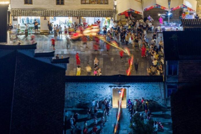 (แฟ้มภาพซินหัว : ประชาชนร่วมชมขบวนพาเหรดมังกรบนม้านั่งในอำเภอผู่เจียง มณฑลเจ้อเจียงทางตะวันออกของจีน วันที่ 5 ต.ค. 2025)