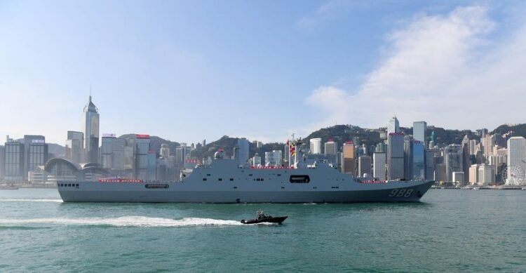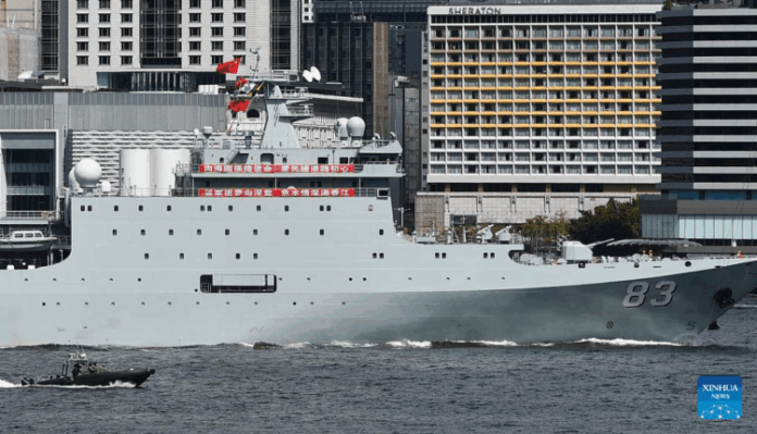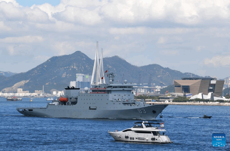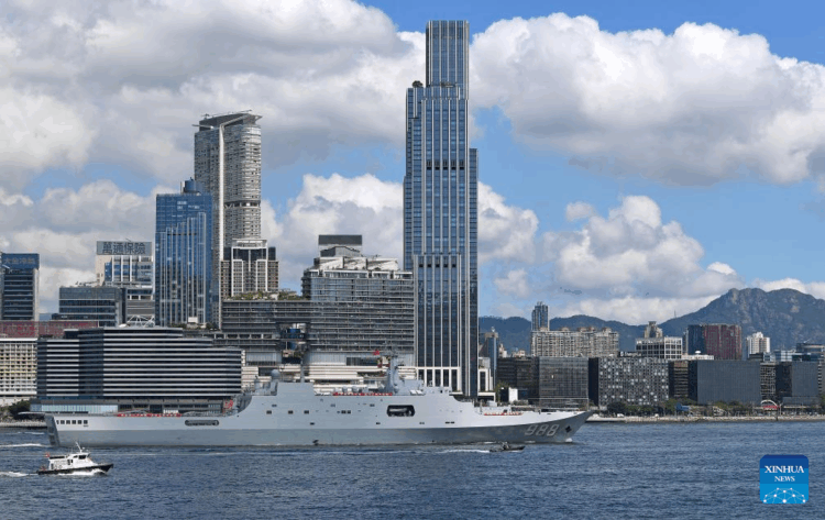 Escorted by vessels from the PLA Hong Kong Garrison and the HKSAR government, Qi Jiguang and Yimengshan sailed towards the PLA Hong Kong Garrison’s naval base in Stonecutters Island. The two vessels will be open for public visits at the Stonecutters Island Navel Base. (Xinhua/Chen Duo)