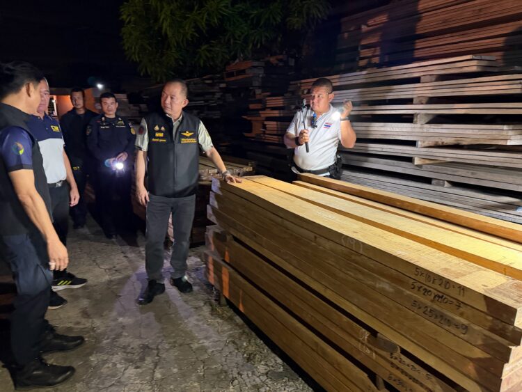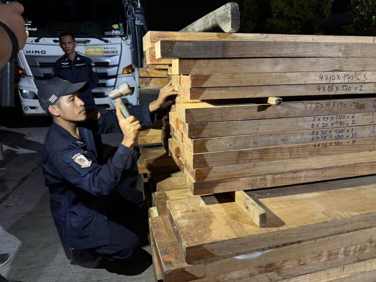 นายชาญชัย กิจศักดาภาพ หัวหน้าชุดพยัคฆ์ไพร นำกำลังเข้าตรวจสอบ พบไม้สักแปรรูปจำนวนมาก เนื้อไม้เป็นแก่นละเอียด วงปีแน่นชัด แสดงถึงอายุไม้เก่าแก่ และเอกสารแสดงถิ่นกำเนิดไม่ถูกต้อง คาดว่าเป็นไม้จากต่างประเทศ รวมปริมาณกว่า 40 ลูกบาศก์เมตร มูลค่าราว 5 ล้านบาท หากส่งออกนอกประเทศ ราคาพุ่งทะลุ 10 ล้านบาท