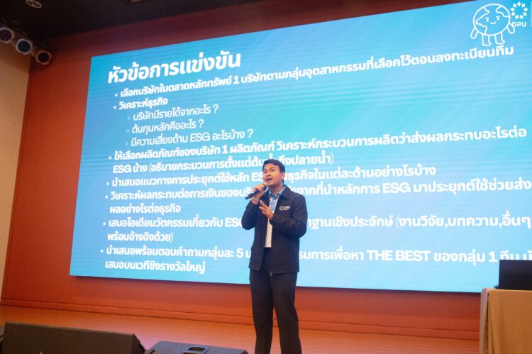 วิทยาลัยบริหารธุรกิจนวัตกรรมและการบัญชี (CIBA) มหาวิทยาลัยธุรกิจบัณฑิตย์ (DPU) จัดโครงการ “Hackathon ESG การพัฒนาแนวคิดธุรกิจอย่างยั่งยืนสำหรับนักบัญชีและนักการเงินรุ่นใหม่” เพื่อพัฒนาศักยภาพนักศึกษาชั้นปีที่ 1 และ 2 จากหลักสูตรการบัญชียุคดิจิทัล และหลักสูตรการเงิน การลงทุน และเทคโนโลยีการเงิน กว่า 200 คน ผ่านการระดมสมองเปลี่ยนของเสียอุตสาหกรรมให้เป็นรายได้ใหม่ เพื่อเตรียมความพร้อมสู่มาตรฐานความยั่งยืนสากลและรับมือภาษีคาร์บอนข้ามพรมแดน ณ ห้องประชุม ดร.ไสว สุทธิพิทักษ์ เมื่อวันเสาร์ที่ 21 กุมภาพันธ์ 2569