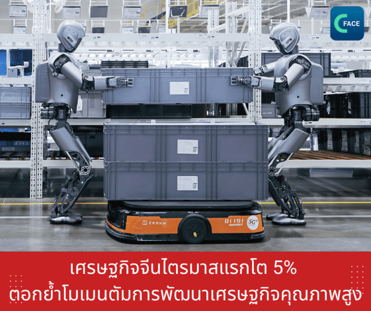เศรษฐกิจจีนไตรมาสแรกที่เติบโตร้อยละ 5 แสดงถึงประสิทธิภาพของนโยบายเศรษฐกิจมหภาคของจีนที่มุ่งเน้นการรักษาเสถียรภาพควบคู่กับการยกระดับโครงสร้างเศรษฐกิจ โดยในช่วงไม่กี่ปีที่ผ่านมา จีนให้ความสำคัญกับการส่งเสริมอุตสาหกรรมยุทธศาสตร์ใหม่ เช่น ปัญญาประดิษฐ์ รถยนต์พลังงานใหม่ เศรษฐกิจดิจิทัล และหุ่นยนต์อุตสาหกรรม ซึ่งเป็นเครื่องยนต์ใหม่ของการเติบโตและช่วยสร้างความสามารถในการแข่งขันในระดับโลก