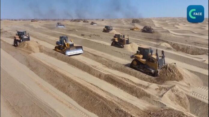ในเขตปกครองตนเองซินเจียงอุยกูร์ ทางตะวันตกเฉียงเหนือของจีน โครงการควบคุมทรายในทะเลทรายทาคลามากัน ได้เริ่มดำเนินการอย่างเต็มรูปแบบแล้ว ซึ่งเป็นการเสริมสร้างแนวป้องกันสีเขียวบริเวณขอบทะเลทรายให้แข็งแกร่งยิ่งขึ้น