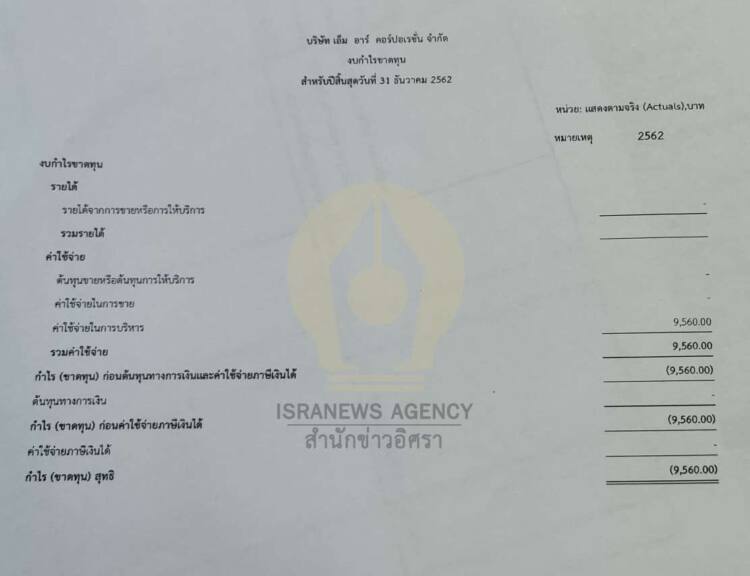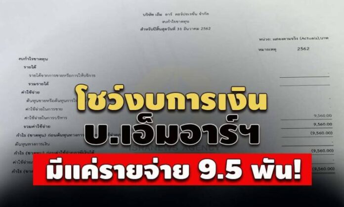 ล่าสุด สำนักข่าวอิศรา (www.isranews.org) ตรวจสอบข้อมูลทางการเงินของบริษัท เอ็ม อาร์ คอร์ปอเรชั่น จำกัด พบว่า เมื่อวันที่ 22 พฤษภาคม 2563 บริษัทฯ นำส่งงบการเงินแสดงผลประกอบการธุรกิจ ณ 31 ธันวาคม 2562 แจ้งว่า ไม่มีรายได้ แต่มีรายจ่ายรวม 9,560 บาท (เป็นค่าใช้จ่ายในการบริหาร 9,560 บาท) ขาดทุนสุทธิ 9,560 บาท
