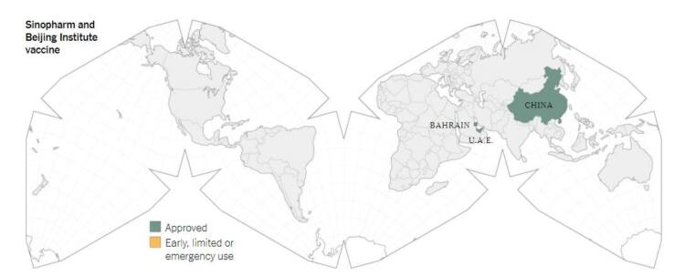 ในวันที่ 14 ก.ย.ประเทศสหรัฐอาหรับเอมิเรตส์ได้อนุมัติฉุกเฉินให้ใช้งานวัคซีนของซีโน่ฟาร์มกับบุคลากรทางการแพทย์และบุคลากรของรัฐบาลกับบุคลากรอื่นๆในเวลาต่อมา และไม่ถึง 2 เดือนหลังจากนั้น ในวันที่ 9 ธ.ค. ประเทศสหรัฐอาหรับเอมิเรตส์ได้มีการอนุมัติเต็มรูปแบบกับวัคซีน BBIBP-CorV ของซีโน่ฟาร์ม โดยมีการประกาศว่าวัคซีนนี้มีประสิทธิภาพอยู่ที่ 86 เปอร์เซ็นต์ รัฐบาลสหรัฐอาหรับเอมิเรตส์ยังได้มีการตั้งคลินิกขึ้นทั่วประเทศ เพื่อให้ประชาชนสามารถไปรับวัคซีนได้ แต่รัฐบาลก็ไม่ได้ประกาศรายละเอียดเกี่ยวกับการประกาศดังกล่าวเลย นี่จึงทำให้เกิดข้อกังขาว่าเกี่ยวกับข้อสรุปของวัคซีนดังกล่าว