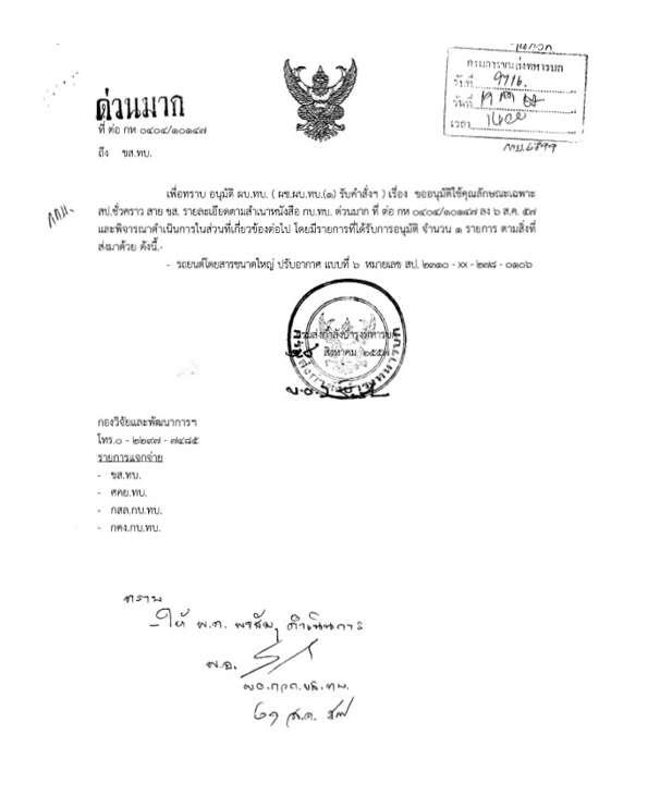 18 ส.ค.2557 กรมส่งกำลังบำรุงทหารบก ส่งหนังสือด่วนมากแจ้งทราบ ถึง ขส.ทบ. วันที่ 19 ส.ค.2557 และเวียนให้หน่วยงานของ ขส.ทบ. รับทราบวันที่ 21 ส.ค.2557 (ดูเอกสาร)
