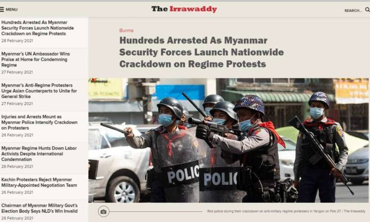 สำนักข่าวอิศรา(www.isranews.org) รายงานข้อมูลอ้างอิงจากสำนักข่าวอิระวะดี ประเทศเมียนมา สถานการณ์การประท้วงต่อต้านรัฐประหารในเมียนมาว่ามีรายงานตำรวจใช้ทั้งกระสุนจริงและกระสุนยาง รวมถึงแก๊สน้ำตา ในการปราบปราบกลุ่มผู้ประท้วงที่นครย่างกุ้งและเมืองทวาย จนส่งผลให้มีผู้เสียชีวิตแล้วอย่างน้อย 2 ราย และบาดเจ็บอีกหลายรายตามรายงานจากสื่อท้องถิ่น