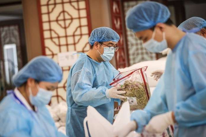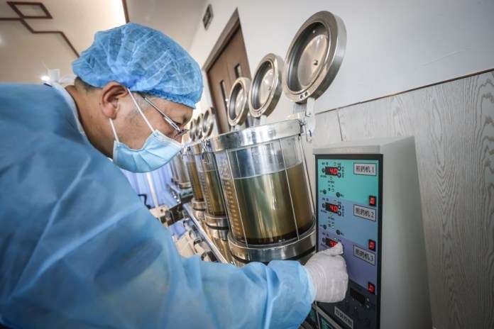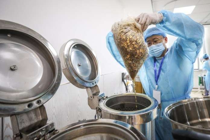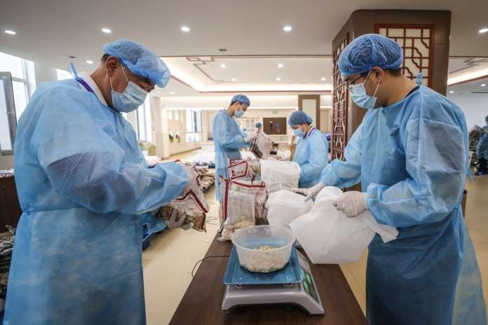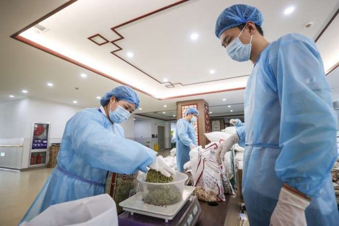 บุคลากรทางการแพทย์ในพื้นที่ต่างทำงานล่วงเวลา เร่งมือต้มยาจีนเพื่อช่วยป้องกันและควบคุมการแพร่ระบาด โดยมีรายงานว่าเจ้าหน้าที่ 70 ชีวิตได้แบ่งตารางงาน 2 กะ ครอบคลุมเวลา 24 ชั่วโมง เพื่อให้สามารถผลิตยาต้มได้เกือบ 30,000 ถุงต่อวัน