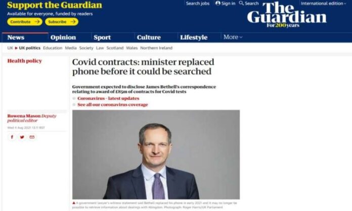 อนึ่งลอร์ดเบเทลต้องเผชิญกับกระแสเรียกร้องให้ลงจากตำแหน่งรัฐมนตรีช่วยหลังจากที่สำนักข่าวการ์เดียนได้เปิดเผยจำนวนของอีเมลที่ถูกคัดลอกไปยังอีเมลส่วนตัว และมีรายงานว่ามีการคัดลอกข้อมูลติดต่อส่วนตัวของเขาอย่างน้อย 4 ครั้ง ซึ่งเป็นการแลกเปลี่ยนข้อมูลกับนักธุรกิจรายหนึ่งที่พยายามจะชนะสัญญารัฐบาลในช่วงที่มีการระบาดของไวรัสโควิด-19